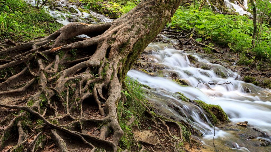 Das Foto, aufgenommen an den Plitwitzer Seen, zeigt nicht nur, wie man Wasser mit einer langen Belichtungszeit fliessen lässt, sondern auch, dass durch die verwendete sehr kleine Blendeneinstellung auch sehr viel Tiefenschärfe entsteht.