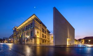 Nachtexkursion Diözesanbibliothek | Canon 5d Mk III – 6 Sekunden bei f / 13 und ISO 100 Lichter und Schatten wurden in der Bildbearbeitung optimiert.Das Foto wurde bei einsetzender Dämmerung …